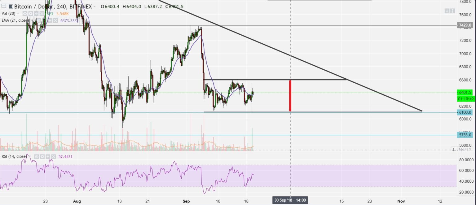A tegnapi napon egy négy órás idősávban az árfolyam $6100 és $6600 környékén is járt. A meredek zuhanás meredek emelkedésre váltott, a vásárlók tömegesen nyitották pozícióikat és egy óra leforgása alatt, jóval a kiindulási árfolyam fölé vásárolták magukat. Aztán jött a jól megszokott visszahúzódás és stagnálás, az árfolyam pedig visszakerült a szeptember eleje óta megszokott átlag, $6350 környékére.