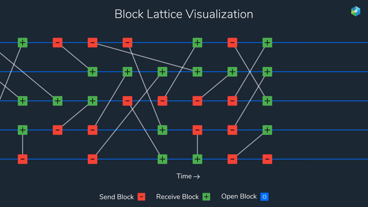 Éppen ezért a blokkrács lényegesen leegyszerűsíti a folyamatot, a csomópontok által frissített elosztott főkönyv, a blokklánc helyett ebben a megoldásban minden egyes felhasználó rendelkezik egy “saját” blokklánccal, melyben utaló és fogadó blokkok követik egymást.