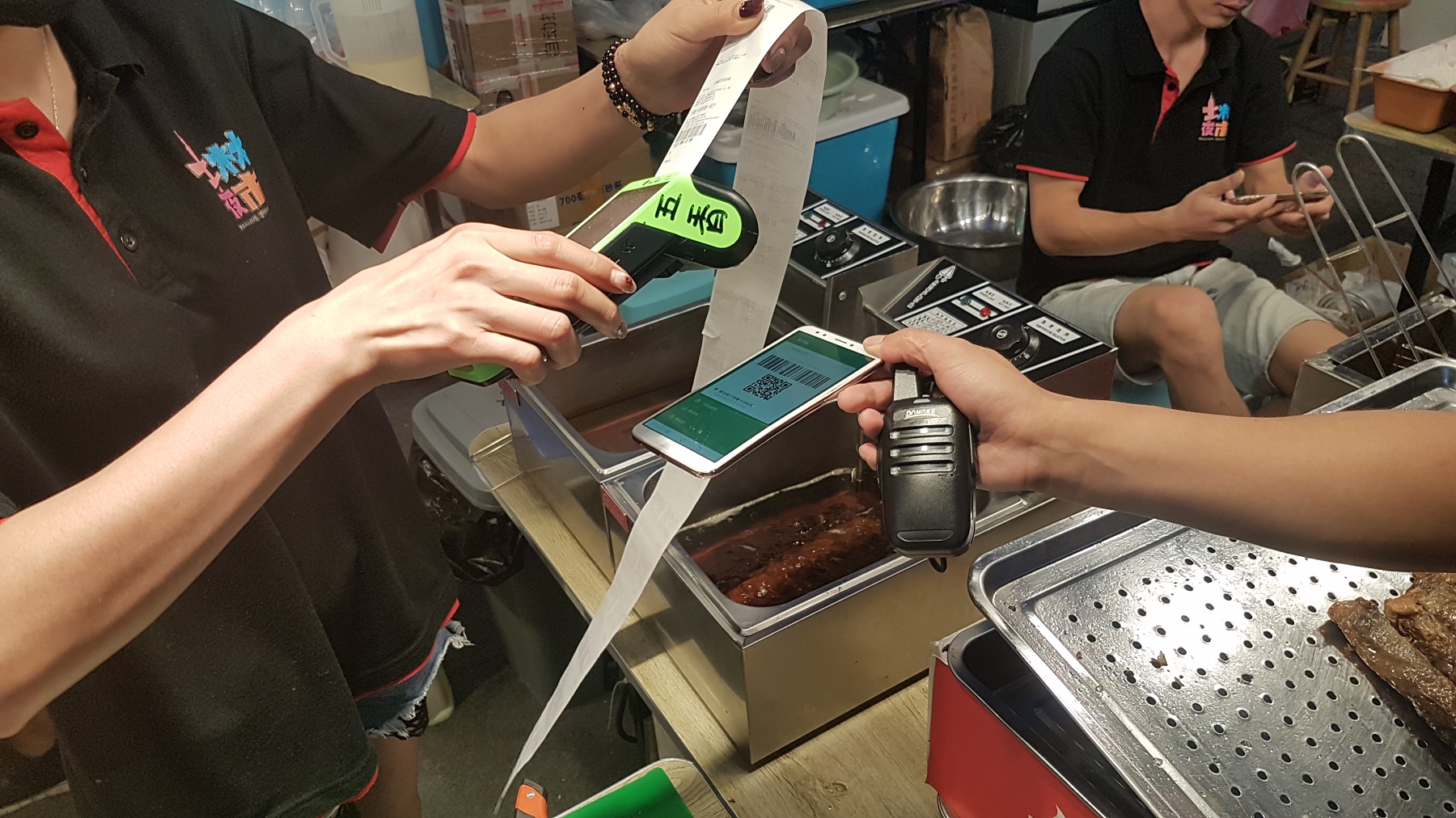 A kisboltban, a buszon, az eladó nélküli önműködő boltban, az automatáknál, a taxikban, az utcán gyümölcsöt áruló néninél de még az utcai koldusnál (!) is ott a WeChat Pay-es saját QR kódja, amit a vásárló leolvas, majd az összeg bepötyögése után egy másodpercen belül megjelenik a zöld pipa a sikeres fizetésről. Nincs papírpénz, nincs apró, nincs bankkártya fogdosása, csak a mindenkinél kézben lévő tepsi okostelefon van.