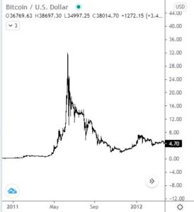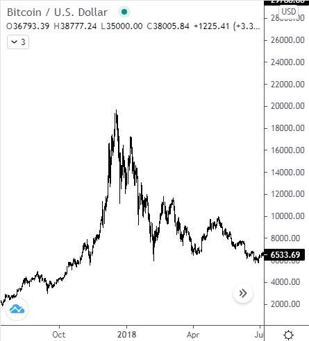 A több éves bitcoin trendek végét jelző pillanatokat a fenti lapos és oldalazó formációkkal szemben inkább a magasba nyúló, eufórikus hangulatban kialakuló csúcsok szokták jellemezni.