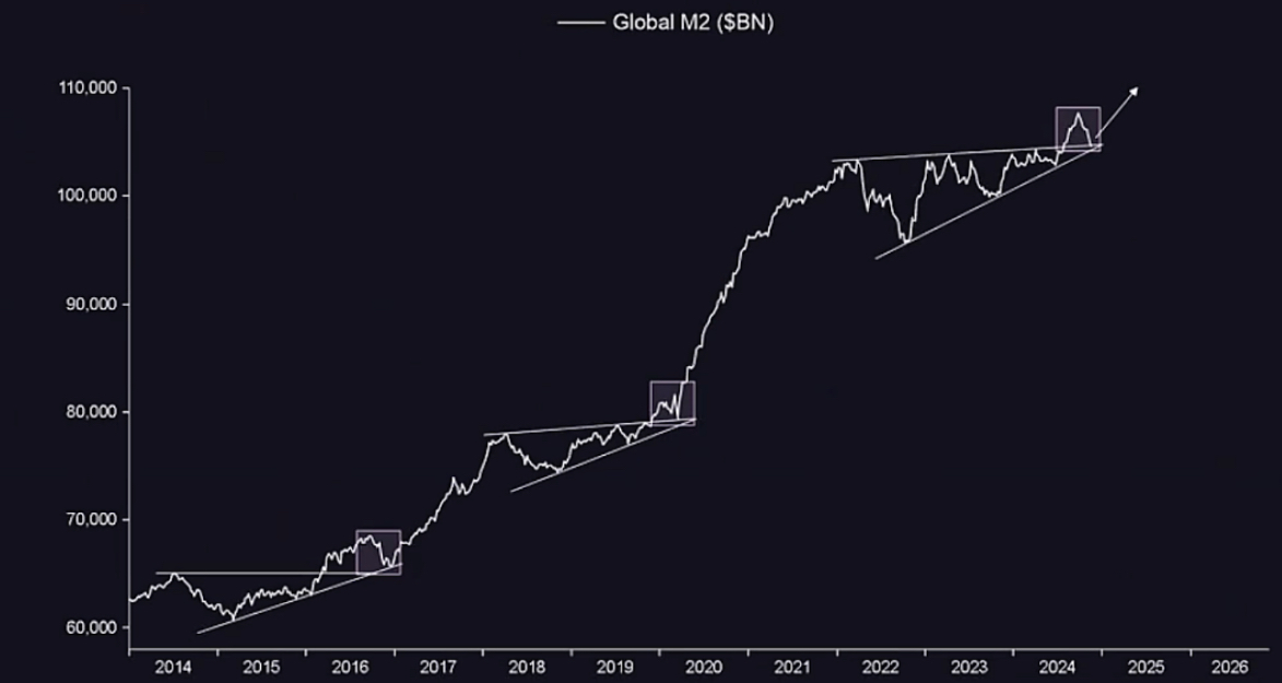 - A globális likviditás általában 12 héttel előrejelzi a Bitcoin árfolyamának csúcsát. Jelenleg a december végi tetőzés mutatkozik, amely $110k-$120k közötti Bitcoin-árat jelez.