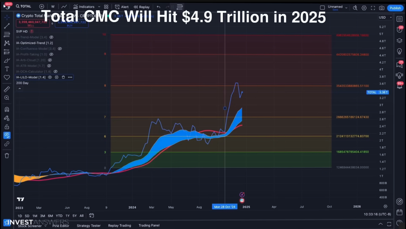 A LILO modellje alapján úgy véli, hogy a teljes kriptopiac kapitalizációja el fogja érni a 4.9 billiárd dollárt. Ez jelenleg 3.36 billiárdon áll. Eme predkició jelentősen elmarad a MilkRoad várakozásaitól (melyről itt írtunk bővebben), akik 10 billiárd dollárt is várnak.