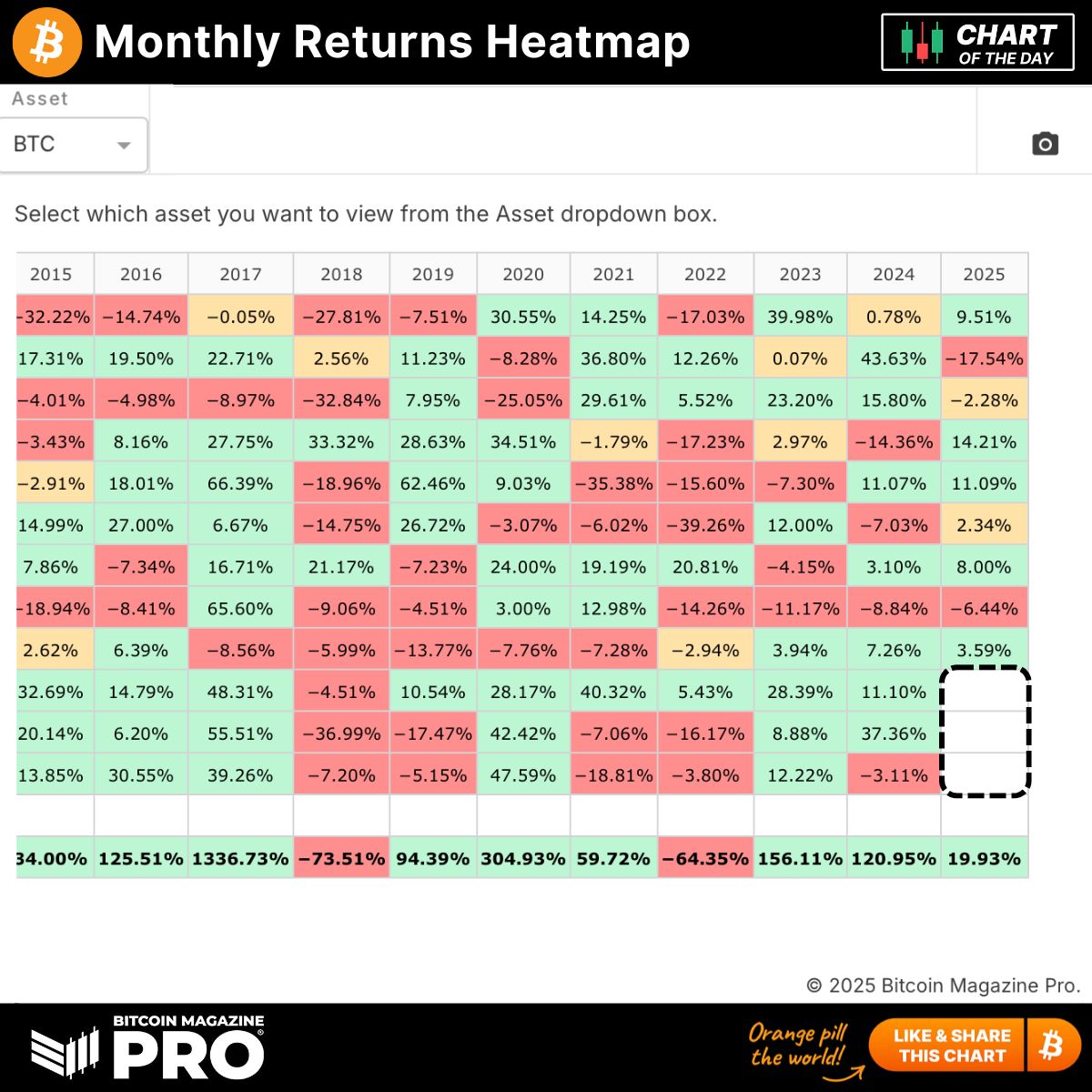 A historikus adatok viszont azt mutatják, hogy ha a Bitcoin zöldben zárja a szeptembert, akkor a negyedik negyedévben gyakran számottevő, kiemelkedő nyereséget könyvel el. A Bitcoin Magazine Pro adatai alapján 2015-ben, 2016-ban, 2023-ban és 2024-ben is a negyedik negyedéves rali átlagosan több mint 50 százalékot hozott.