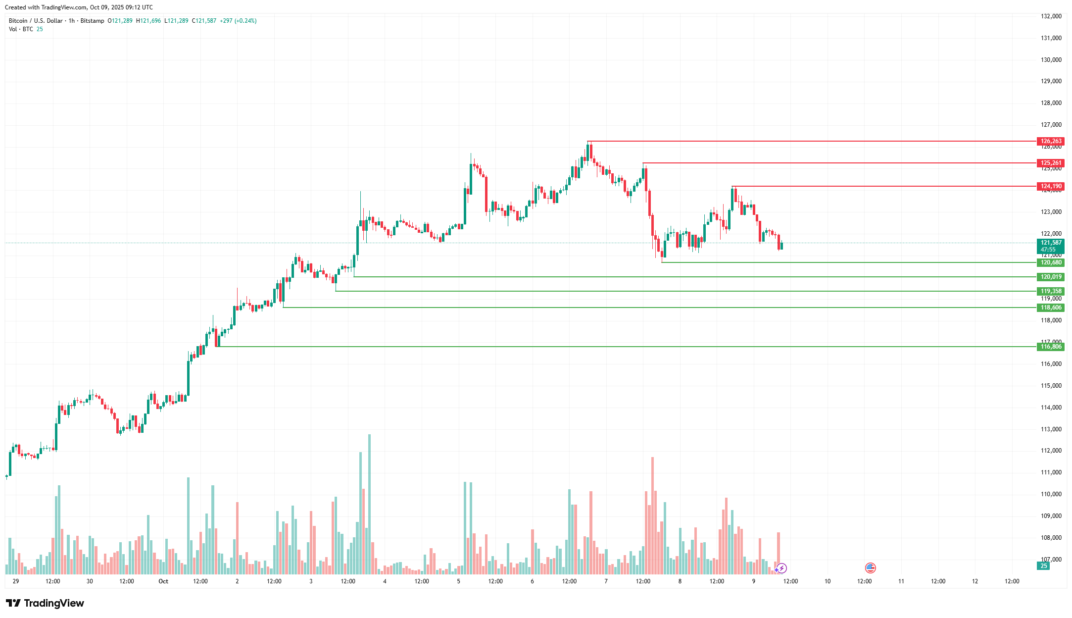 A napos grafikonon a trend érintetlen maradt. Az ADX 30 felett van, ami megerősíti az érett emelkedő trendet, miközben az RSI és a Stochastic nem mutat kimerülésre utaló jeleket. Az MACD hisztogramja továbbra is erősödik, ami a tartós felfelé irányuló momentumot jelzi. A közelmúltbeli csúcs fölötti döntő áttörés megnyithatja az utat a 130 000 dolláros lélektani szint felé. Ezzel szemben a korábbi ellenállási zónák a 120 000 és 117 000 környékén valószínűleg támaszt nyújtanak majd a rövid távú visszahúzódások esetén.