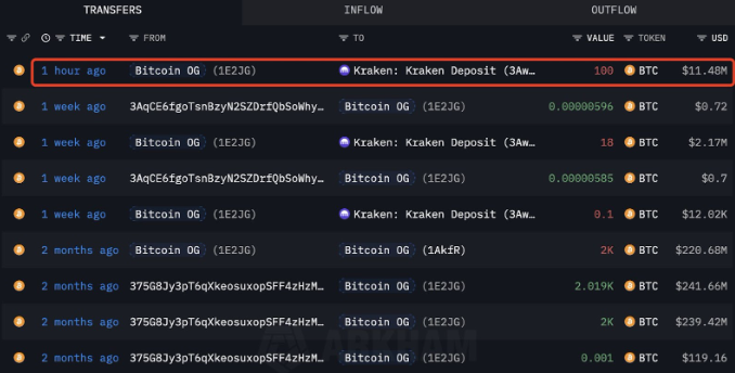 Ahogy az árak visszapattantak, a Bitcoin OG 100 BTC-t, vagyis mintegy 11,48 millió dollárt helyezett el a Kraken tőzsdén. A Lookonchain adatai szerint a bálna pénztárca valószínűleg további fedezetet adott a short pozíciójához, hogy elkerülje a likvidálást.