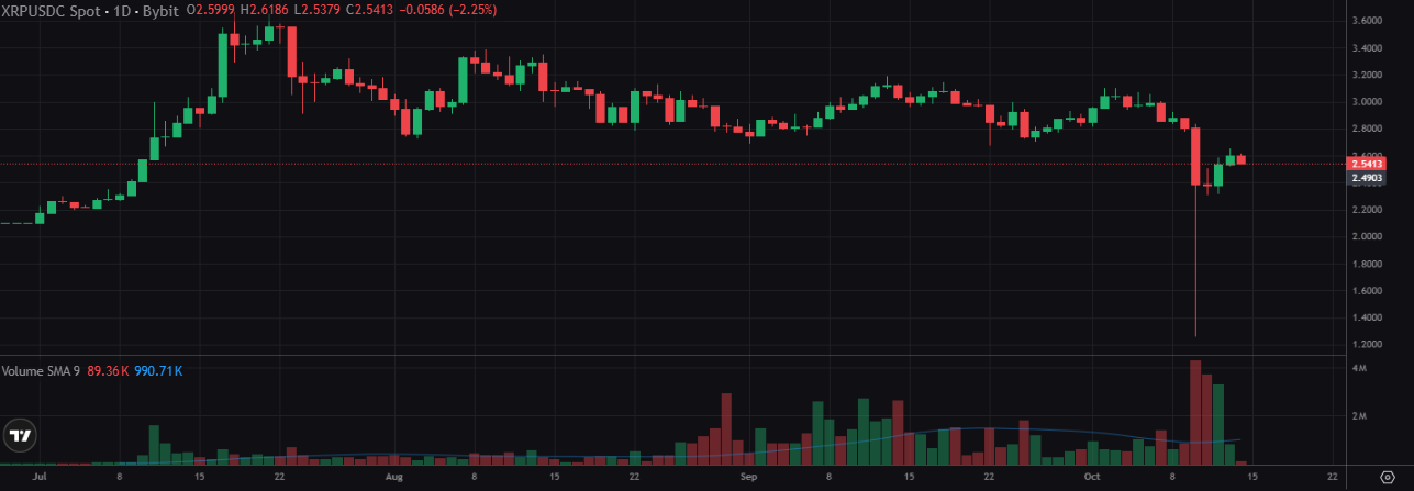 A Bybit EU heti közösségi játékában ezúttal a Ripple (XRP) árfolyamára lehet tippelni. A feladat egyszerű: meg kell jósolni, hogy mennyi lesz a Bybit EU-n az XRP/USDC árfolyam 2025. október 19-én, 0:00-kor (UTC), azaz magyar idő szerint október 19-én 02:00-kor.