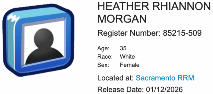 Morgan-t állítása szerint egy hónapja engedték ki, miután 18 hónapos büntetéséből 8-at már letöltött. Az amerikai hatóságok nyilvános adatbázisa szerint viszont még nem teljesen szabad és januárig továbbra is az ő felügyeletük alatt áll.