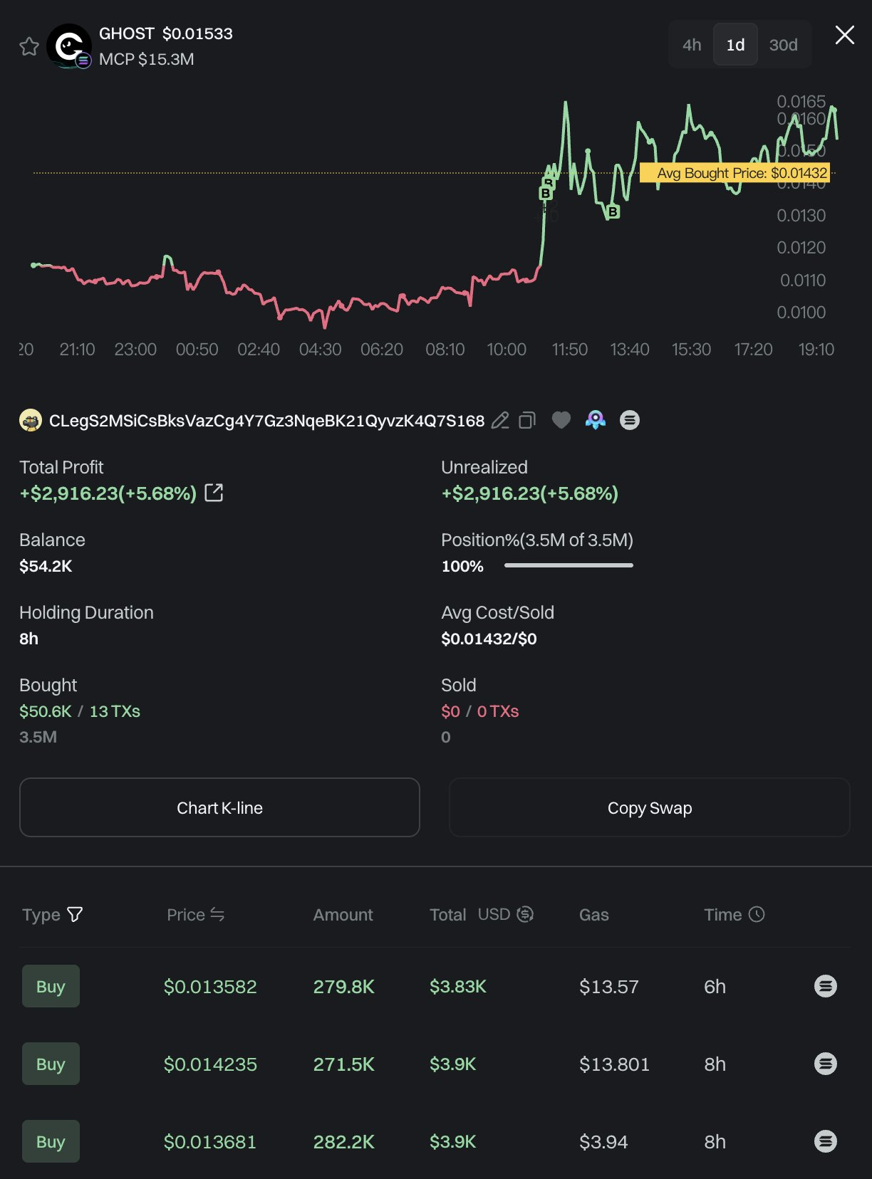A lefelé tartó trend soárn egy befektető váratlanul merész lépést tett. Míg mások eladták a kriptóikat, ez a pénztárca 50 600 dollár értékű Solanát váltott át 3,5 millió GHOST tokenre, bizalmat mutatva a mindössze 1,6 millió dolláros piaci értékű token iránt.
