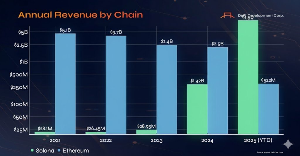 A jelenlegi adatok szerint Solana 2025-ben már 1,4 milliárd dolláros bevételnél jár, ami több mint kétszerese a Ethereum esetében mért 522 millió dollárnak. Az összesítést a Solana alapítója, Anatoly Yakovenko is megosztotta követőivel.