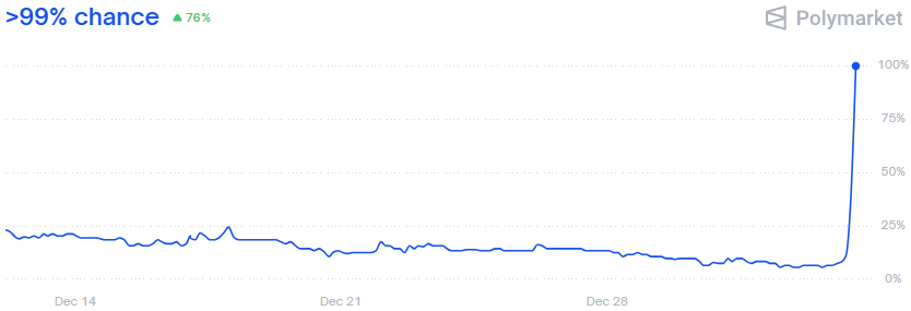 Az akció bejelentése előtt a piac még csak 5-7% esélyt adott Maduro elmozdítására, ami a hírek hatására hirtelen 99% fölé ugrott.