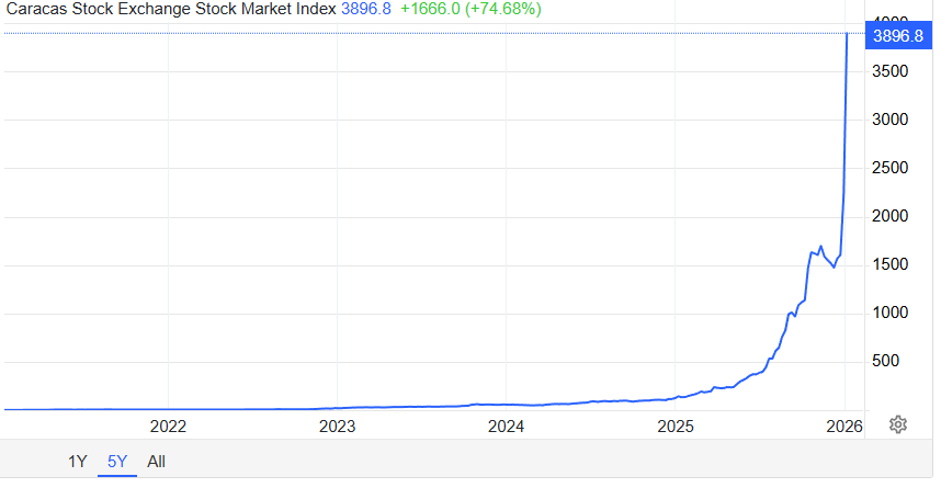 Látványos raliba kezdett a venezuelai részvénypiac: a caracasi tőzsde teljesítményét mérő IBC index értéke néhány nap alatt megduplázódott.