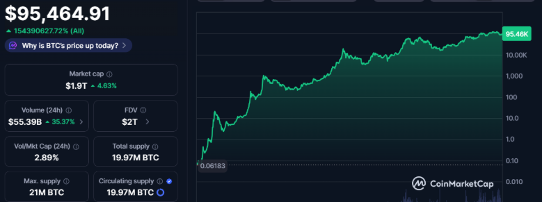 Egy rövid árkonszolidációs időszak után a Bitcoin újra lendületbe jött. A legnagyobb kriptovaluta kedden áttörte a 95 000 dolláros szintet, majd egészen 96 000 dollárig emelkedett, ami szélesebb körű piaci felpattanást indított el.