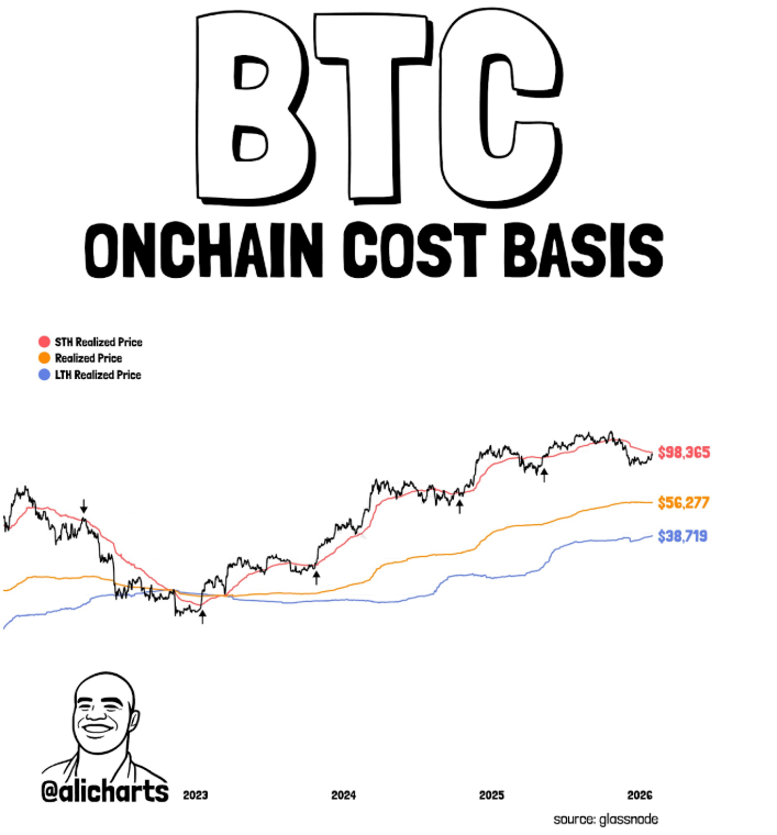 Konkrétan Martinez megjegyezte, hogy a Bitcoin közel jár a rövid távú befektetők (STH – short-term holders) realizált árfolyamához, amely jelenleg 98 365 dollár. Azok számára, akik nem ismerik ezt a mutatót: az STH realizált ár a rövid távú befektetők által tartott BTC átlagos bekerülési árát jelenti.