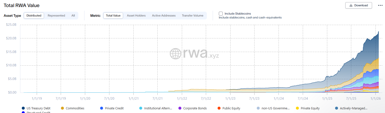 A BlackRock főnök várakozásainak ellenére a gyakorlati előrelépés ezen a téren ma még meglehetősen visszafogott. A befektetők eddig nagyjából 22 milliárd dollárt helyeztek el tokenizált eszközökben (RWA: Real World Assets), és ezek többsége is néhány szűk területre koncentrálódik.