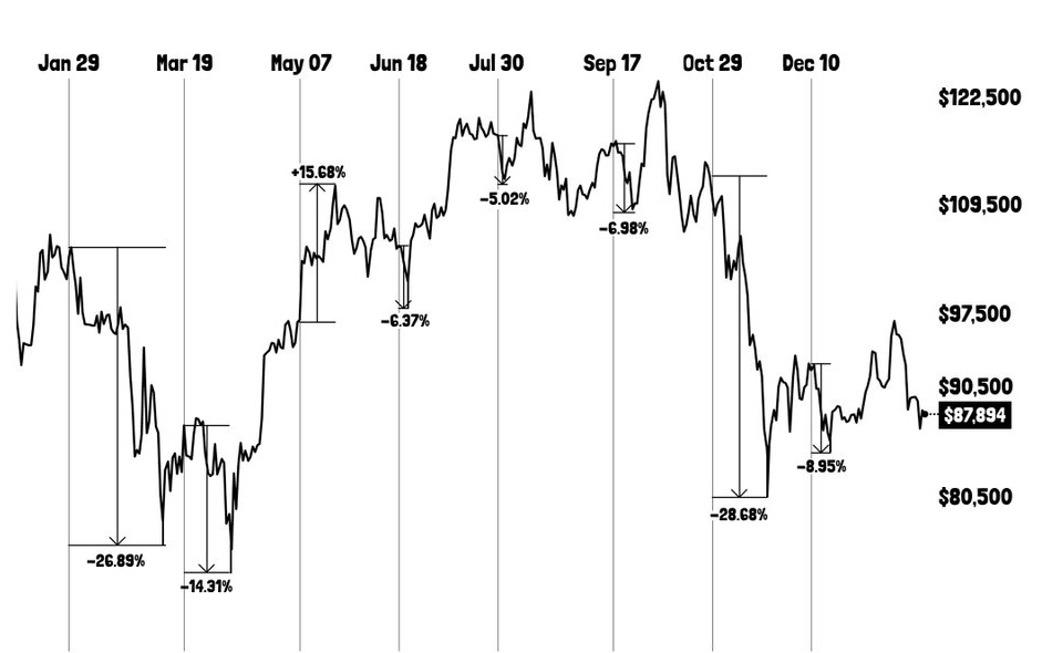 A leglátványosabb a tavalyi első, 2025. január 29-i ülés volt. Ezt követően a BTC árfolyama 27 százalékkal esett. Az utolsó, december 10-i döntés után szintén 9 százalékos korrekció következett.