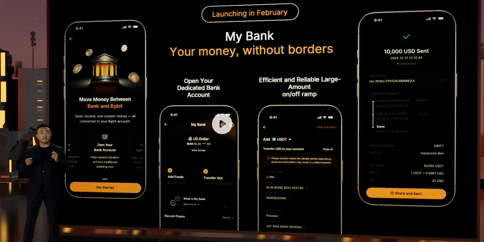 A Bybit erre a problémára válaszul indítja el a Bybit My Bank nevű szolgáltatást, aminek keretében minden Bybit felhasználó egy saját, nemzetközi bankszámlaszámmal (IBAN) rendelkező bankszámlát kap, ami teljes értékű számlaként használható: érkezhet rá tőzsdei befizetés, munkabér, vagy bármilyen más utalás, de akár fizethetők lesznek róla a közüzemi számlák vagy hiteltörlesztések is.