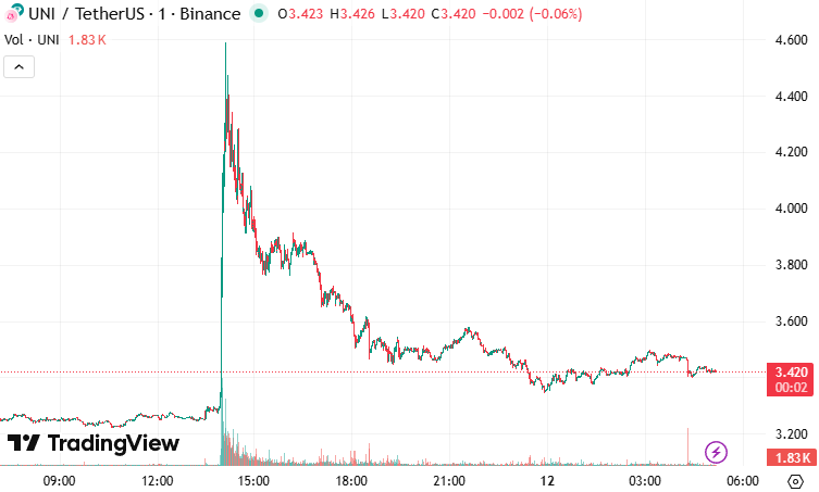Az UNI token árfolyama a bejelentést követően 40%-kal emelkedett, ám a negatív piaci hangulat miatt ezt sok kereskedő kihasználta, és gyorsan realizálta profitját.