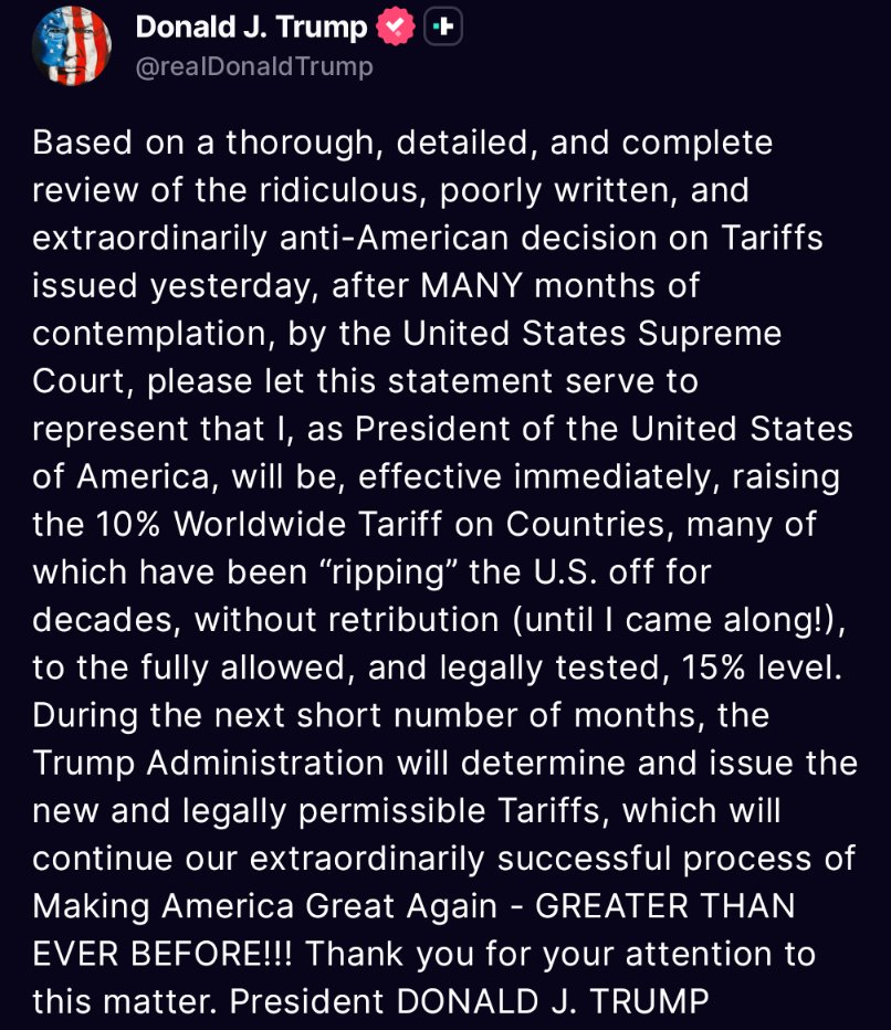A nap igazi bombahíre azonban csak órákkal később robbant. Az amerikai Legfelsőbb Bíróság egy történelmi, 6-3 arányú határozatban megsemmisítette a kormányzat vámkivetési jogkörét, amelyet az elnök a nemzetközi sürgősségi gazdasági hatalmi törvényre (IEEPA) hivatkozva gyakorolt.