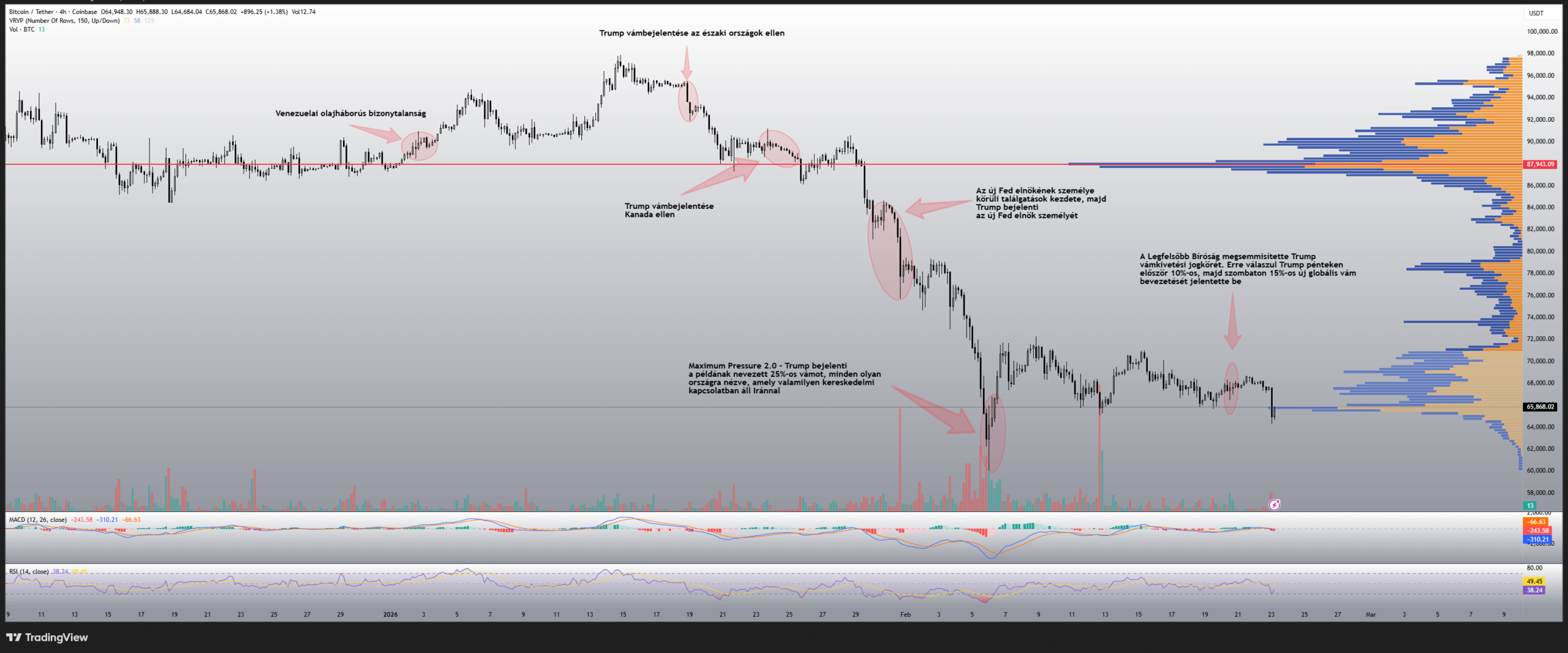 Mindezt tetézve, a Legfelsőbb Bíróság egy precedensértékű döntéssel valósággal kihúzta a talajt az amerikai elnök legfőbb gazdasági fegyvere alól. Bár a Fehér Ház egy rohamtempóban kiadott rendelettel azonnal ellencsapást indított, a befektetők, a kereskedők és a piacok egyaránt a bizonytalanság hosszú távú hatásait találgatják. Mi lesz így a Bitcoin-árfolyamával?