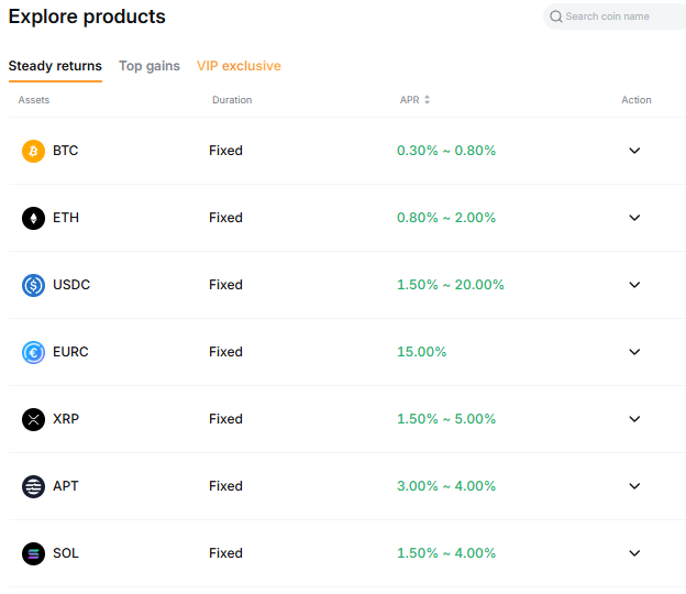 A Bybit Earn aloldala jelenleg 28 különböző kriptovalutára kínál kamatozó szolgáltatásokat, melyekkel további hozam is szerezhető