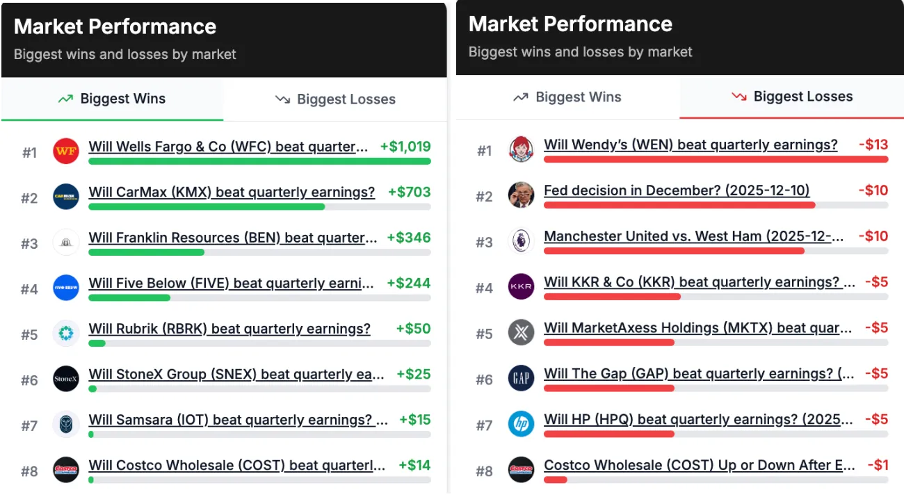 A platform által kínált egyik kategória az úgynevezett Company Earnings, ahol a felhasználók arra fogadhatnak, hogy egy adott vállalat felülteljesíti-e a piaci várakozásokat a következő negyedéves gyorsjelentésében.