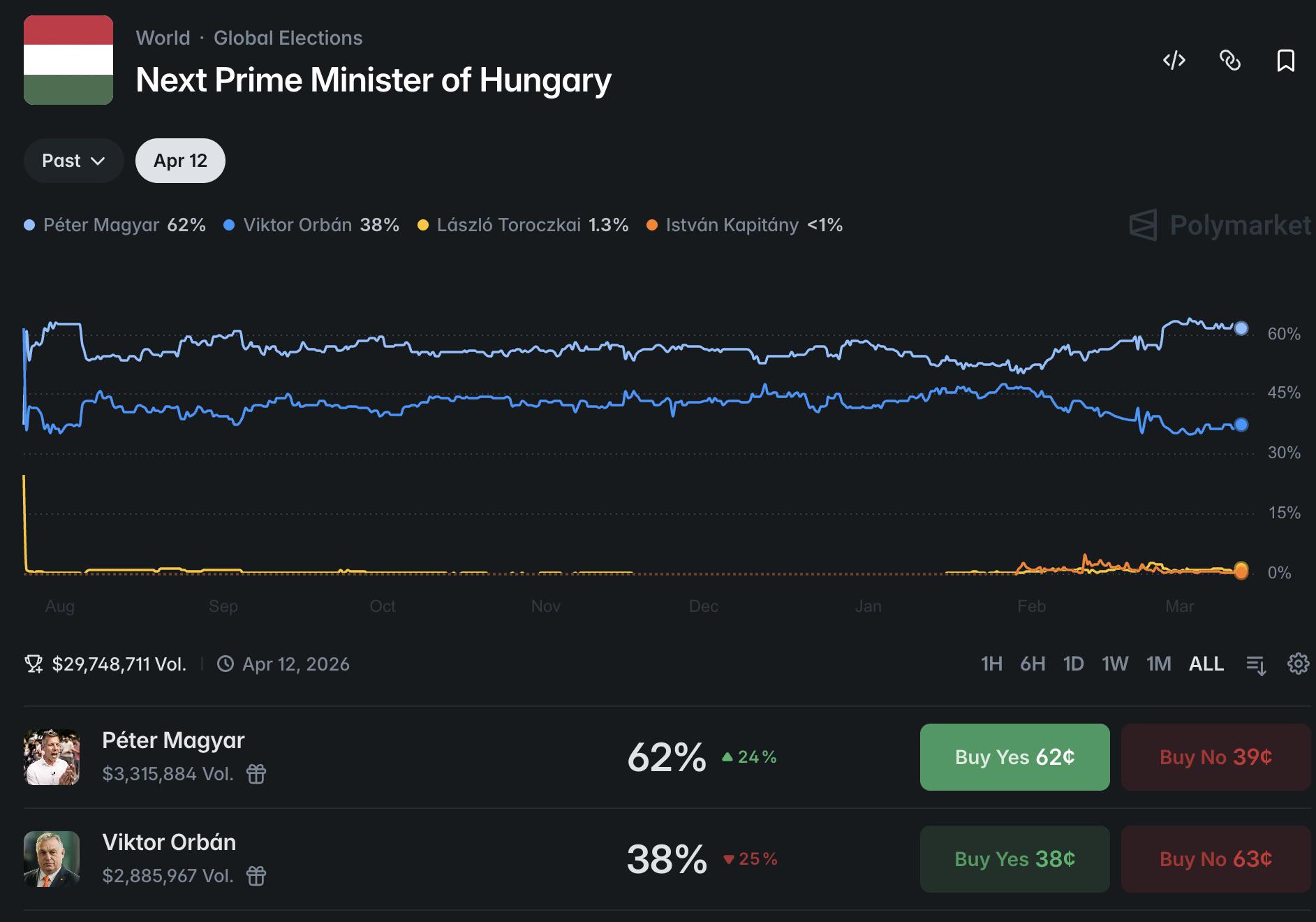 A platformon a magyar választások kimenetelére is fogadhatnak a felhasználók. Az esemény forgalma már megközelítette a 30 millió dollárt (kb. 10 milliárd forintot)