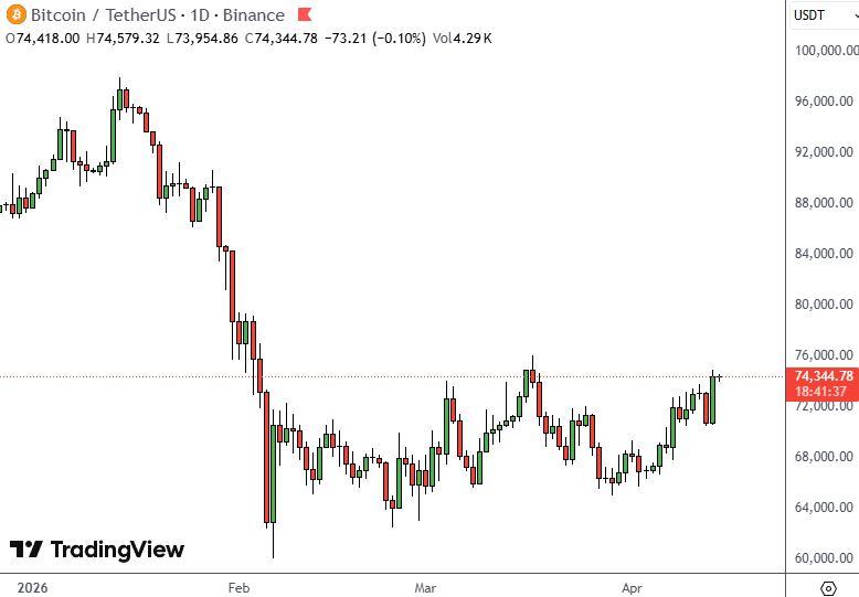 A bitcoin árfolyama a volatilis piaci környezet ellenére 74 000 dollár fölé emelkedett. Az emelkedést több tényező is segítette, a rekordközeli vállalati felhalmozás és a január óta nem látott ETF-beáramlás, valamint az a várakozás, hogy az Egyesült Államok újabb fontos szabályozási mérföldkőhöz érhet.