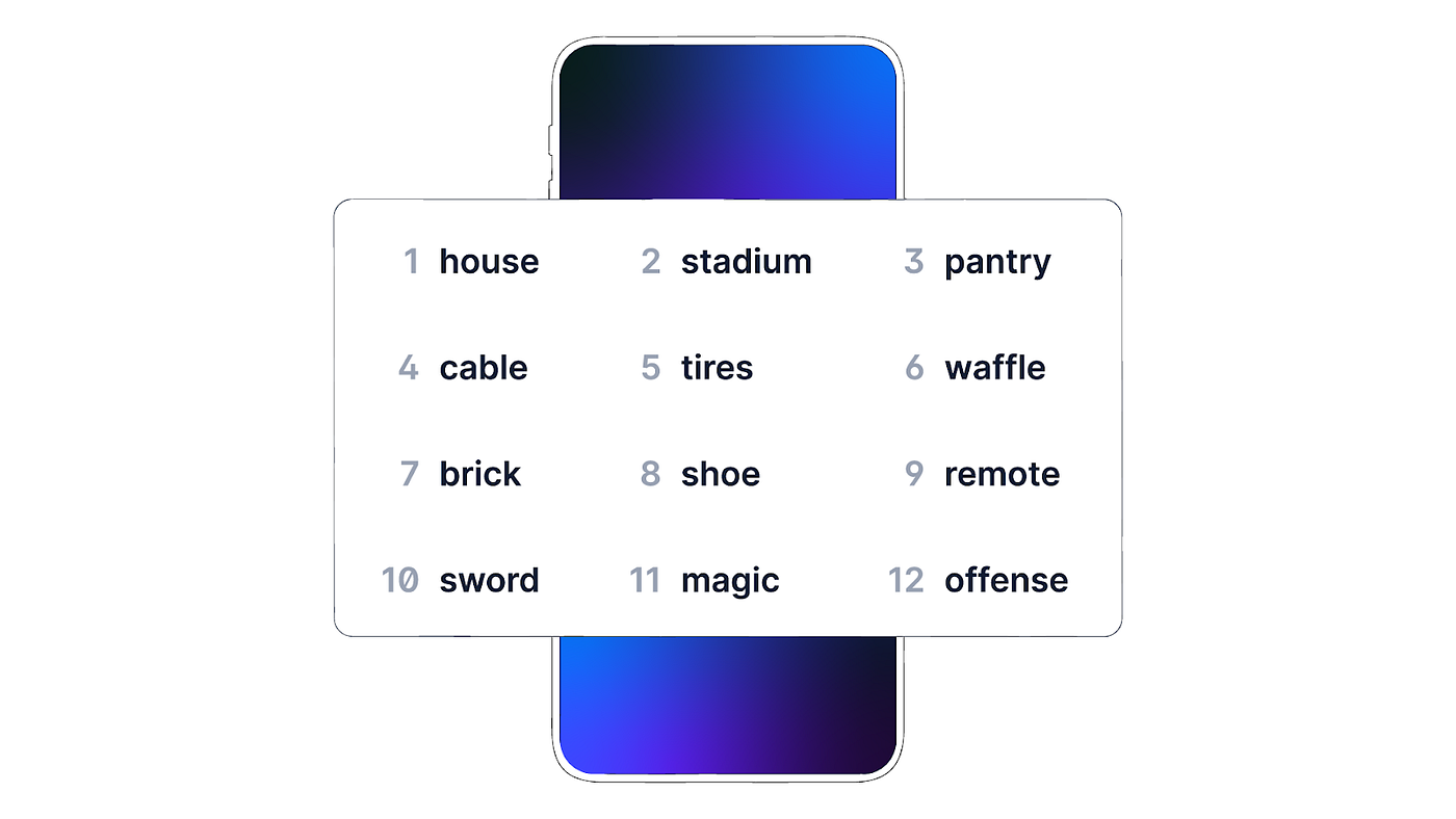 Egy tárcaszoftveren belül, akár a cím készítése közben, akár utána, megnézheted az ún. visszaállító kódot (angolul recovery seed, seed phrase, recovery phrase, vagy backup phrase). Ez tulajdonképpen a tárcádhoz tartozó privát kulcs leképezése. A privát kulcs egy kriptográfiai fogalom, egy hexadecimális karakter/számsor, azonban az emberi agy számára nehéz lene kezelni, leírni vagy akár megjegyezni, ezért tartozik minden tárcához (és így minden privát kulcshoz) egy 12-24 angol szóból álló visszaállító kód. Ez a tárcád legfontosabb része, feltörni lehetetlen a lehetséges kombinációk számából fakadóan. Egy 12 szóból álló visszaállító kód a következőképpen néz ki: