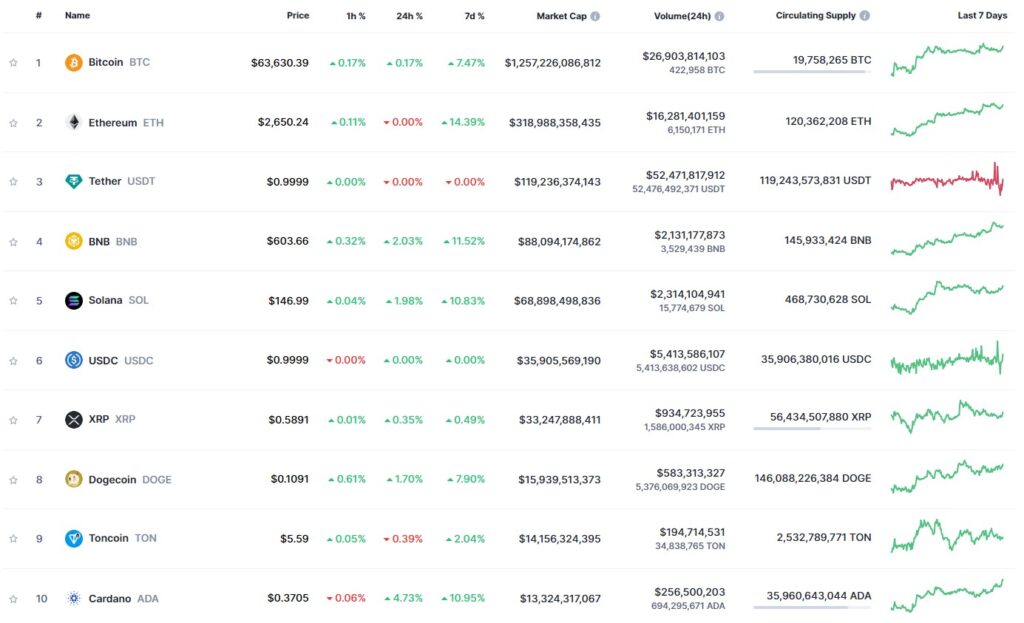 Az alábbi képen látható az első tíz kriptopénz a copimarketcap oldaláról. Az első a Bitcoin, majd őt követi öt altcoin. De miféle toplista ez? Mi alapján rendezik sorba a kriptopénzeket ezek a listázó oldalak? A válasz egyszerű: piaci kapitalizáció alapján.