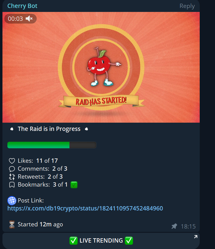 Csináltak Raid csoportokat? (A Raid csoportoknak az a lényege, hogy twitteren és telegramon egymás posztjait likeolják és osszák meg. Ilyenkor addig zárva van a chat, amíg nincs elérve az adott cél (100 like, 50 repost stb.).) Az ilyenekbe minél több ember részt vesz, annál nagyobb elérést tudnak szerezni. Ezáltal, ha van aktívak Raid csoport az jót jelenthet egy projektnek.