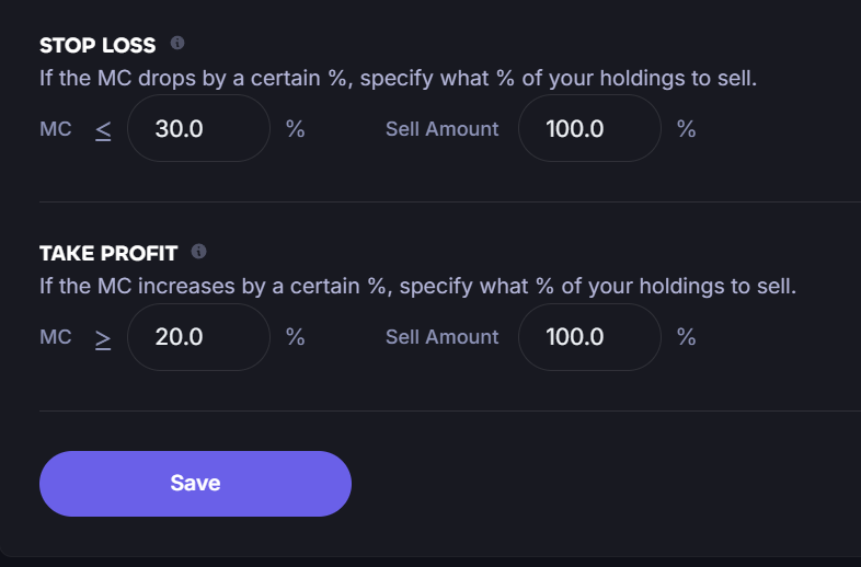 Az Auto-Buy alatt tudsz Buy ordereket beállítani, miszerint automatikusan megveszi neked ha x százalékot esik a mostani mcapről.